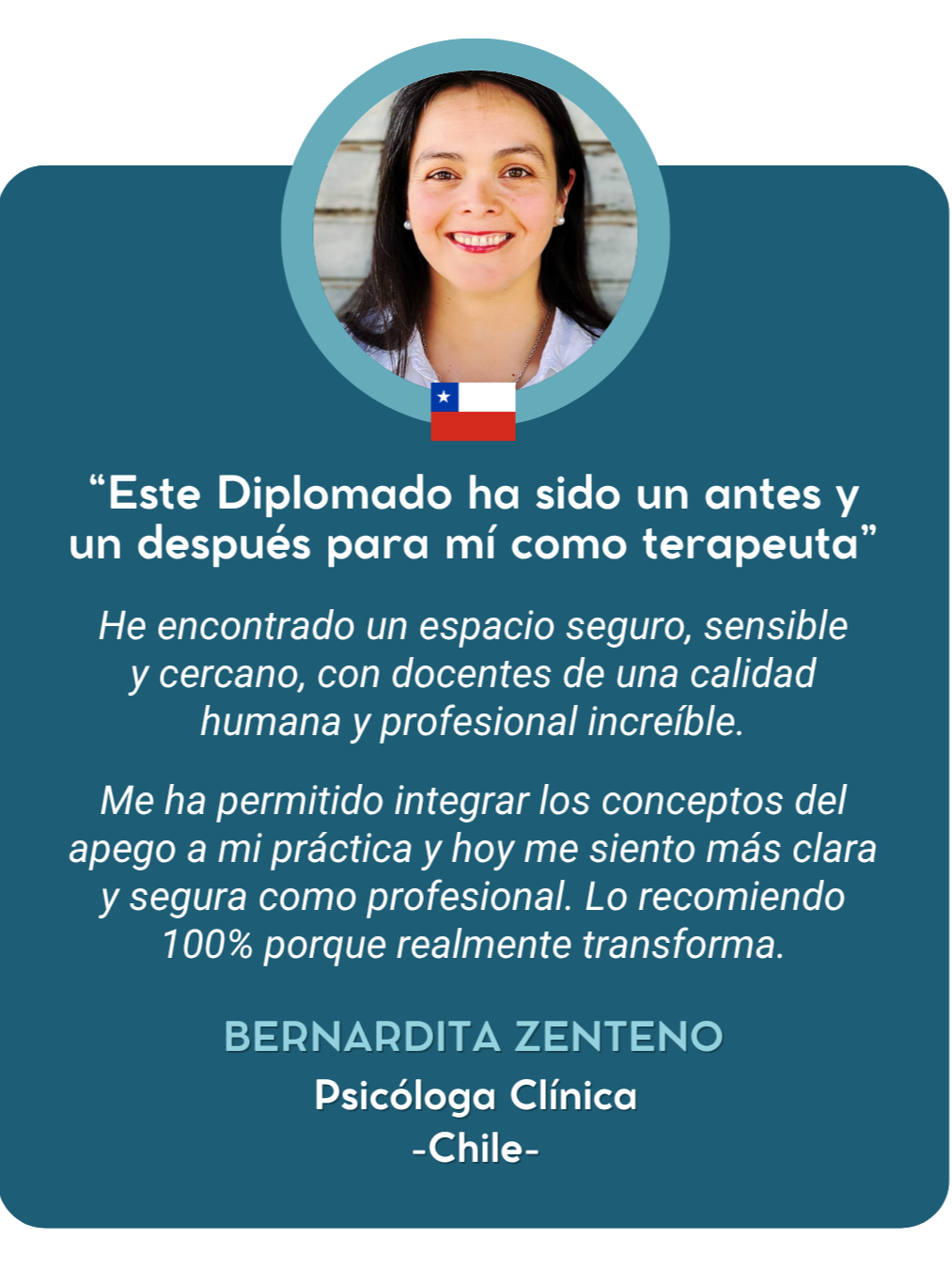 Participa como docente en programas de posgrado en universidades chilenas y es una destacada ponente en Congresos Latinoamericanos como referente en Apego Adulto y Terapia de Pareja.